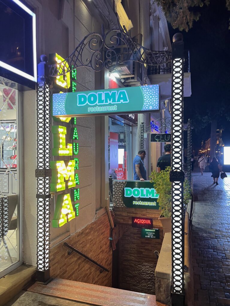 I found myself at Dolma near Fountain Square, tucked opposite the Azerbaijani Literature Museum, looking for a very unique local experience with my colleague. The location felt a little daunting before I stepped inside, but once weI did we found a creative Interior that nodded to old Baku, without feeling like a museum exhibit. It felt spacious enough to accommodate a crowd, yet still cosy as a unique experience spot.